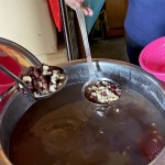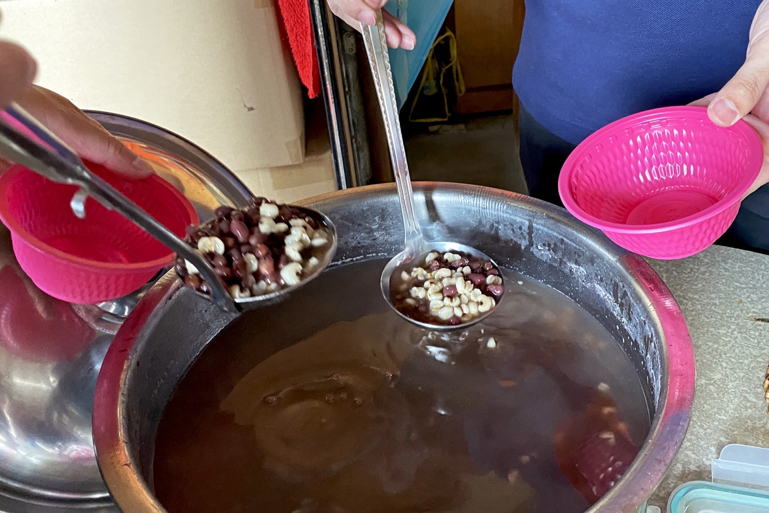 將熱呼呼的相思豆甜湯舀進(jìn)碗裡,
